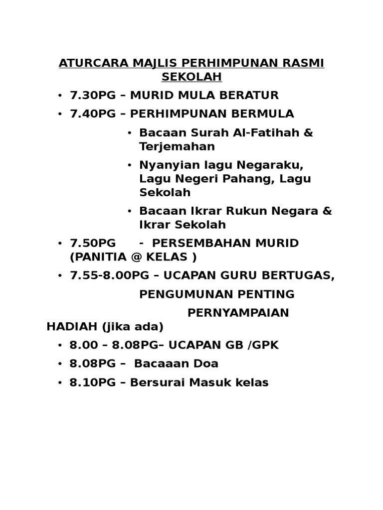 Skrip pengacara majlis jamuan hari raya 20188 handouts linkedin profile ramah. Check 'atur cara' translations into english. Make your own stunning event program designs for free with canva's impressively easy to use online event program maker. Use translate.com to cover it all. The word 'program' can also mean the flow of events or 'itinerary' or in bahasa malaysia 'aturcara.' in the english term tentative program . Example of a majlis from uae in al ain traditional furniture teach abroad. Contextual translation of aturcara majlis ulang tahun perkahwinan into english. Ara (sebelum majlis bermula) sebelum majlis bermula sebentar nanti, diminta para hadirin